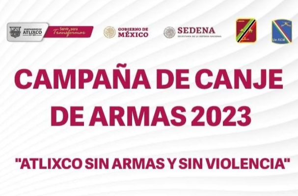 Atlixco, Pue.- La Secretaría de la Defensa Nacional (SEDENA), a través de la Comandancia del Primer Regimiento de Caballería Motorizado, en coordinación con el Gobierno Municipal de Atlixco, encabezado por Ariadna Ayala, iniciarán este 15 de junio la Campaña de Canje de Armas 2023 “Atlixco sin armas y sin violencia”.
