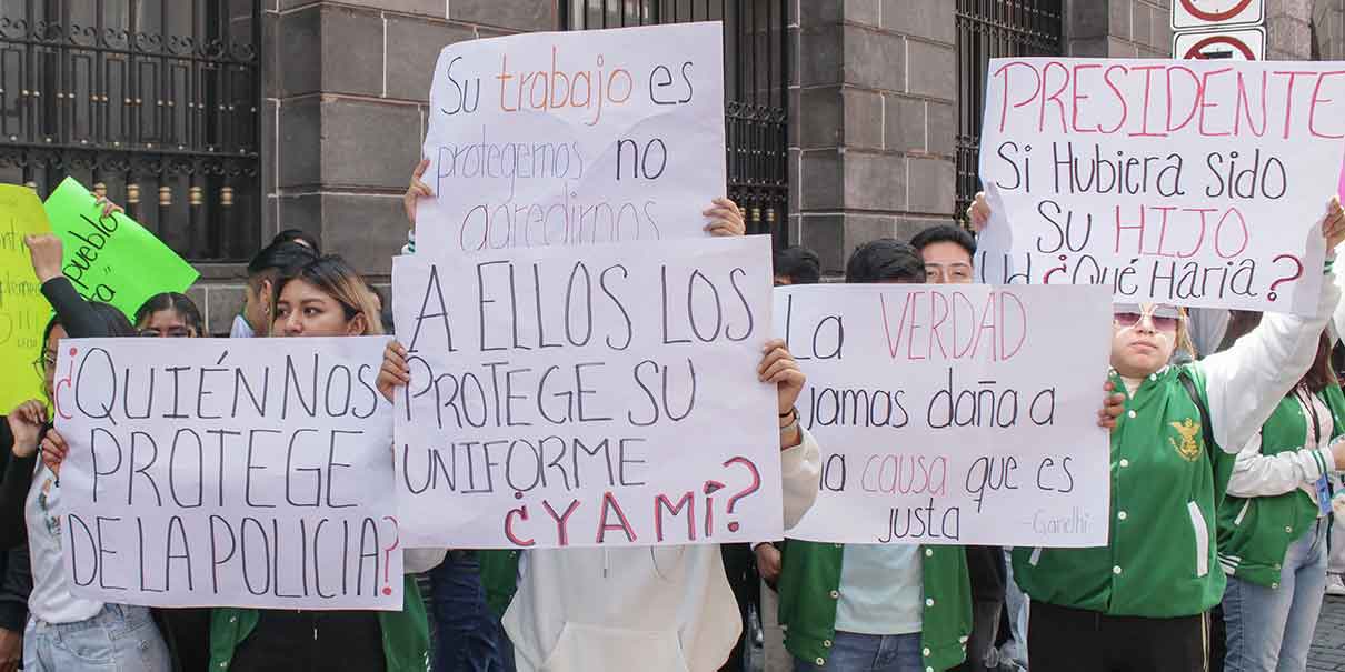 Fueron cerca de un centenar de personas quienes caminaron sobre la avenida Reforma hasta llegar al Palacio Municipal, para pedir al alcalde Eduardo Rivera Pérez, sancione a los responsables de la agresión en contra del estudiante y reprocharon que este tipo de seguridad no es la que desean los poblanos.