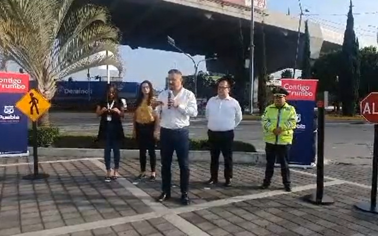 Puebla, Pue.- Adán Domínguez, gerente municipal de Puebla capital, hizo entrega del balizamiento y mantenimiento de la red semafórica de la Calzada Zaragoza y Diagonal defensores.