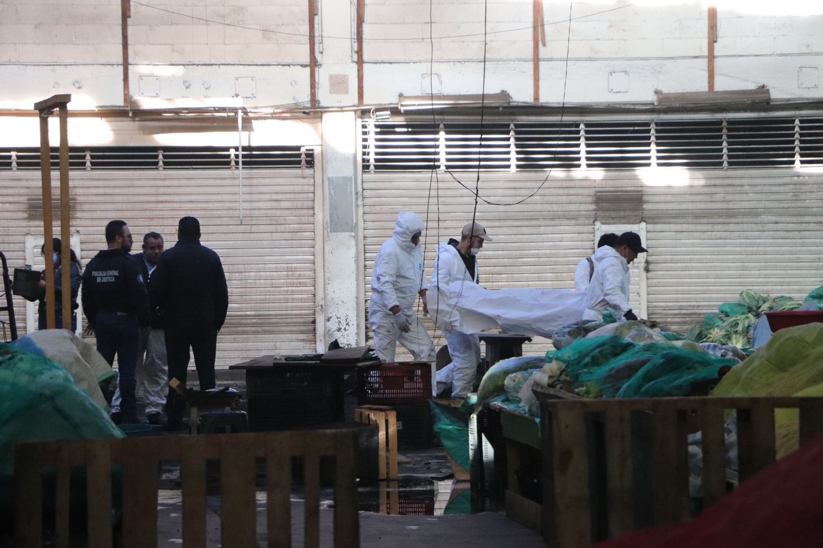 Elementos de la Fiscalía General de Justicia del Estado de México realizan el levantamiento de evidencias y el retiro de los cuerpos sin vida para la autopsia de ley.