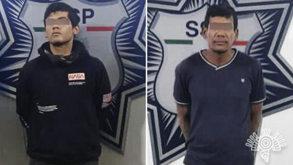 Puebla, Pue.– La Secretaría de Seguridad Pública detuvo a dos hombres por su probable participación en el delito de robo.