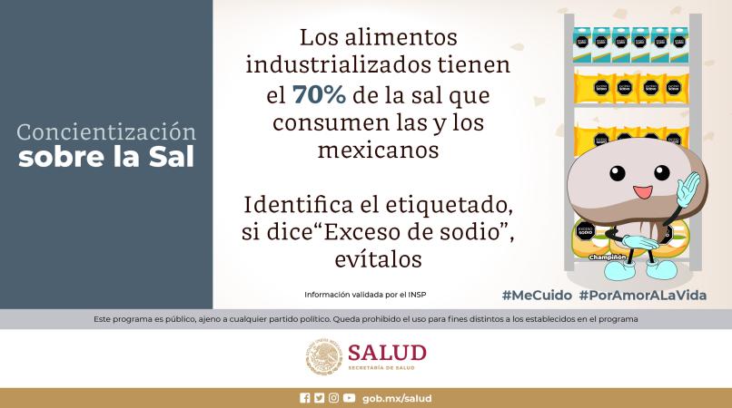 Datos de la Encuesta Nacional de Salud y Nutrición (Ensanut) 2016 muestran que todos los grupos poblacionales consumen una cantidad superior a los dos gramos que se recomienda; como ejemplo, niñas y niños de 5 a 12 años ingieren 2.8 gramos; adolescentes, 3.7 gramos, y personas adultas, 3.1 gramos.