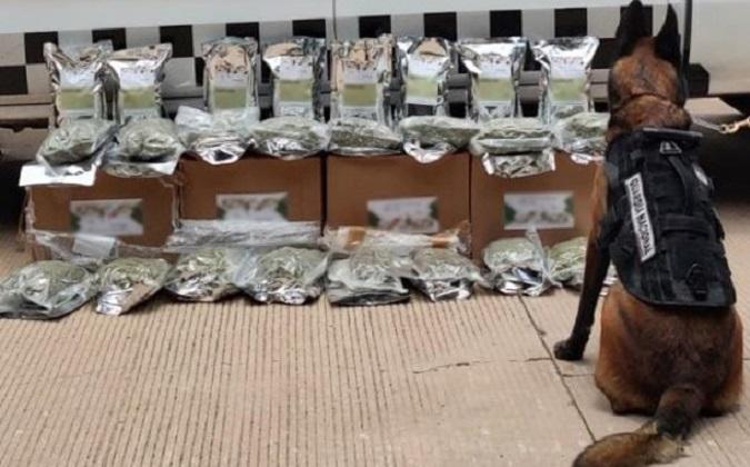 Los elementos de la Guardia Nacional revisaron los paquetes que contenían un total de 24 bolsas metálicas, aparentemente con infusiones herbales, pero cada una ocultaba hierba verde y seca con las características propias de la marihuana.