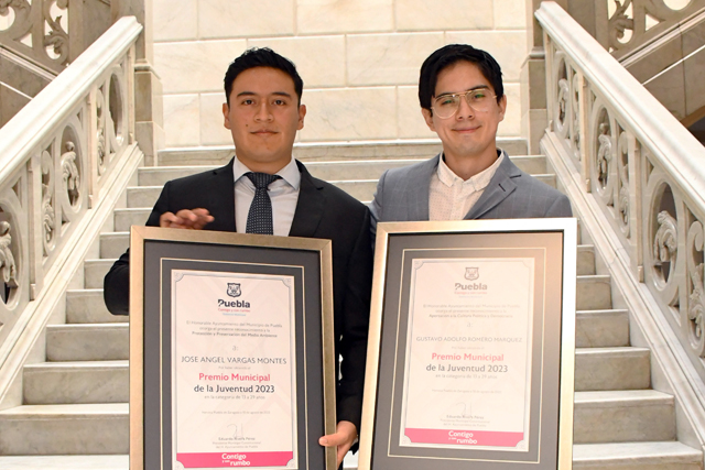 José Ángel Vargas Montes y Gustavo Adolfo Romero Márquez, alumnos del nivel superior de la BUAP, fueron acreedores al Premio Municipal de la Juventud 2023, otorgado por el Ayuntamiento de Puebla, con el cual se reconoce su dedicación al trabajo y estudio, además de sus propuestas en materia de energías renovables y urbanismo, para hacer frente a problemas sociales.