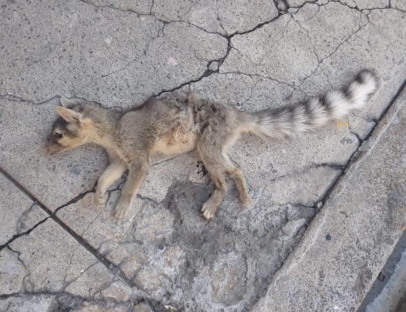 Atlixco, Pue. En plena calle céntrica Atlixco fue encontrado un ejemplar de Cacomixtle sin vida. De acuerdo con algunos testigos el roedor quizá bajó del cerro de San Miguel o salió de su hábitat en la colonia de Los Solares, calificado como un pulmón verde.