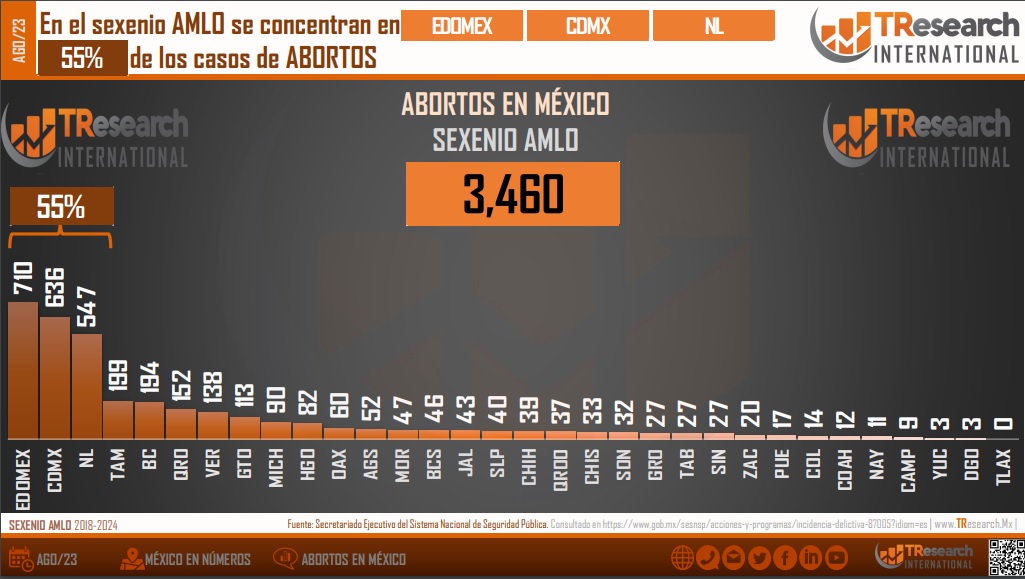 El Estado de México, la Ciudad de México y Nuevo León encabezan las denuncias por aborto en México entre diciembre de 2018 y agosto de 2023, que corresponde al actual sexenio de gobierno federal.