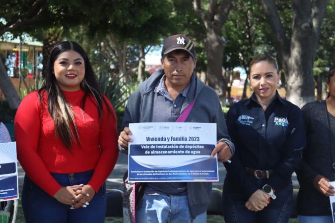 San Pedro Cholula, Pue.- Este martes 26 de agosto, la presidenta municipal Paola Angon encabezó la entrega de 500 depósitos de almacenamiento de agua de 1,250 litros, a través de la Secretaría de Bienestar Sustentable y Sostenible con el programa “Vivienda y Familia”, que tiene como objetivo mejorar la calidad de los servicios básicos en los hogares de las familias cholultecas.