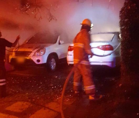 Una vez en el sitio se confirmó el incendio de dos vehículos: un automóvil sedán Volkswagen Passat y una camioneta Honda CRV, las cuales estaban en plena combustión.