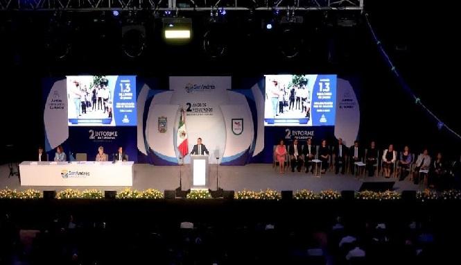 Para el eje 3, San Andrés Municipio Seguro, el edil puntualizó que se fortaleció la seguridad y el parque vehicular del municipio con la adquisición de 11 patrullas, 2 camiones de bomberos y 2 ambulancias. A través de la Unidad de Atención Integral a las Mujeres (UDAIM), se brindó atención a 222 mujeres víctimas de violencia de género, se realizó mantenimiento integral al stand de tiro y fue creada el Área de Atención Psicológica para el personal operativo de la Secretaría de Seguridad.
