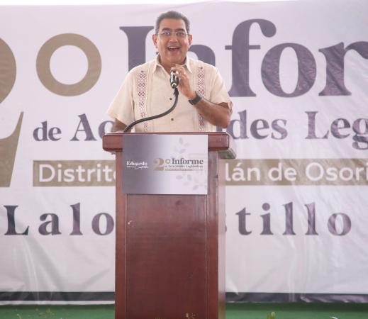 Acatlán, Pue. – Al acudir al segundo informe de actividades legislativas del diputado local, Eduardo Castillo López, el gobernador Sergio Salomón manifestó que su administración trabaja para generar más bienestar, progreso y paz social, como lo es en la Mixteca donde se han destinado más de 446 mil millones de pesos para diversos proyectos.