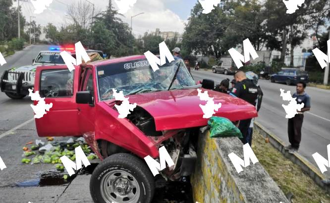 Puebla, Pue.- Un comerciante quedó atrapado en la cabina de su camioneta luego de estrellarse contra el muro de contención del Bulevar Municipio Libre (Las Torres), a la altura de La Margarita.