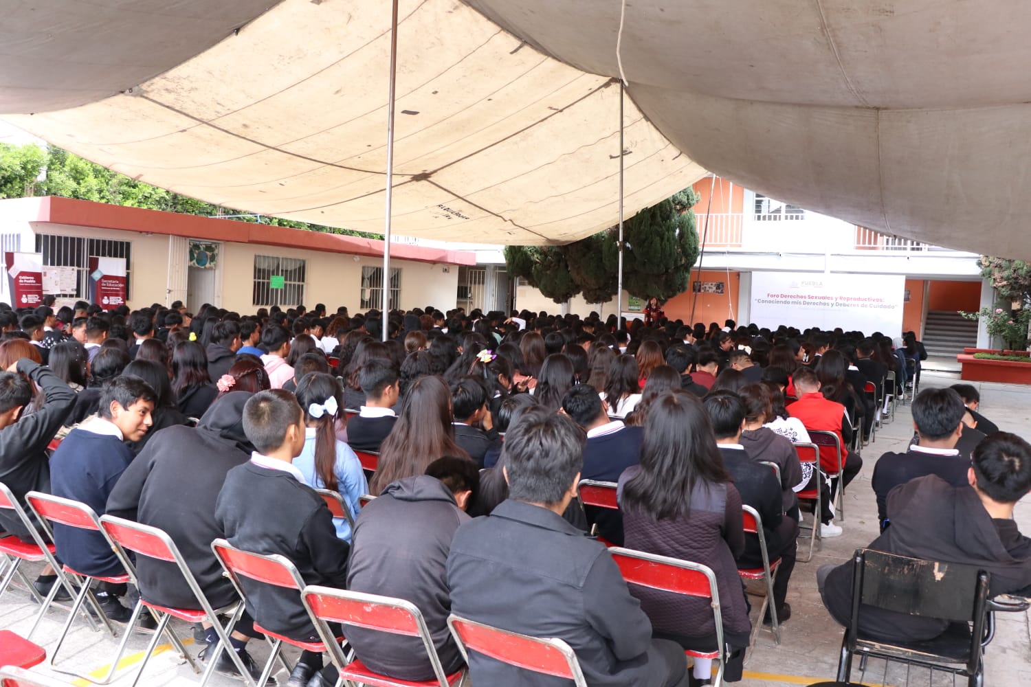 Puebla, Pue. - Con el objetivo de fomentar acciones de cuidado que lleven a una cultura de prevención en materia de derechos sexuales y reproductivos, el gobierno presente de Sergio Salomón, a través de la Secretaría de Igualdad Sustantiva (SIS), realizó el “Foro Derechos Sexuales y Reproductivos: Conociendo mis Derechos y Deberes de Cuidado”, en el bachillerato general oficial "Insurgentes" de la junta auxiliar San Pablo Xochimehuacan.