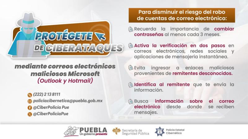 Alerta SSP de Puebla a usuarios de Outlook y Hotmail sobre correos maliciosos