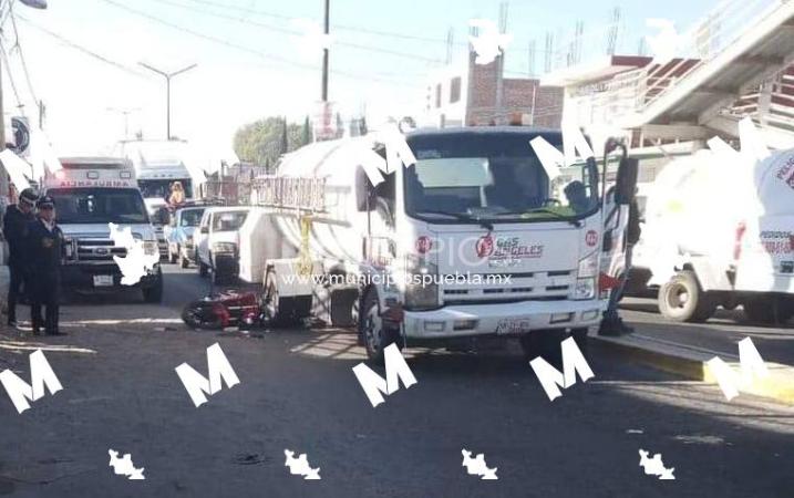 Fueron algunos automovilistas quienes reportaron a los números de emergencia que en la vialidad citada una pipa de gas Los Ángeles había embestido a un motociclista.