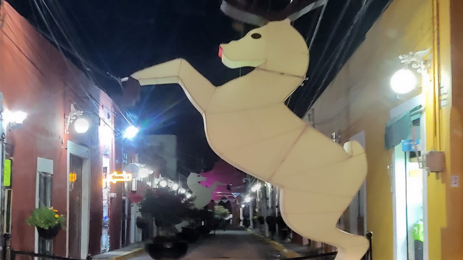 Dos renos juntos al final del callejón Constitución, muy cerca del zócalo, del Palacio Municipal y de la Parroquia de la Natividad. Y de frente al aún cerrado y dañado por el sismo del 19 de septiembre del 2017 ex Convento El Carmen.