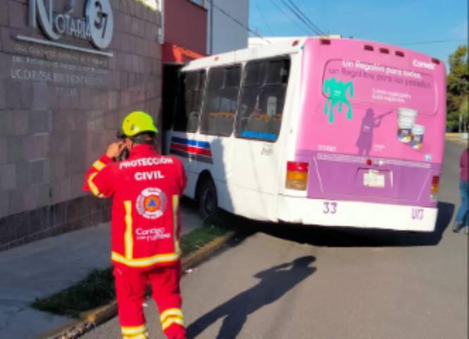 Puebla, Pue.- Una unidad del transporte público chocó contra una casa ubicada en calle 27 Oriente entre 6 y 8 Sur, a un costado de la Notaría 37,