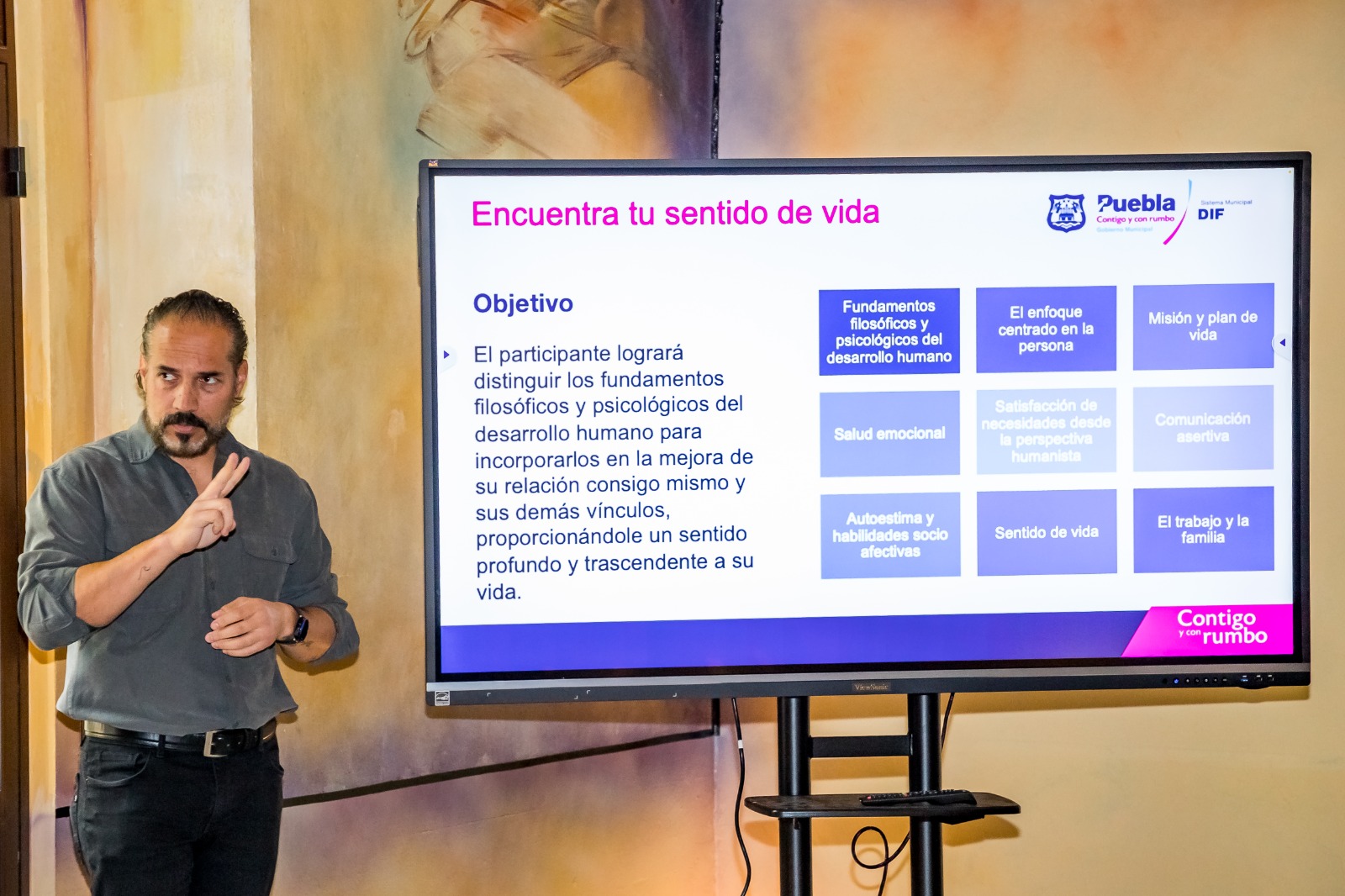 Se trata de los contenidos 'Trascendencia, duelo y transformación', 'Encuentra tu sentido de vida' y 'Equilibra tu vida', los cuales son resultado del compromiso y trabajo en conjunto del SMDIF Puebla y la BUAP por brindar servicios que fomenten el desarrollo socioemocional, a través de contenidos profesionales, empáticos y respetuosos, señaló en su presentación Liliana Ortiz Pérez, presidenta honoraria del Sistema.