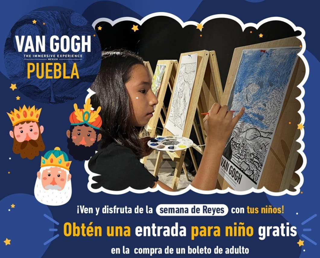 Puebla, Pue.- Por el Día de Reyes en Puebla, niñas y niños entran tendrán acceso gratis a la exposición de Van Gogh Inmersivo, que se presenta en el Centro Expositor de los Fuertes de Loreto.