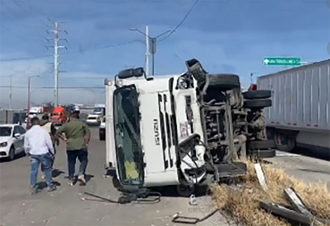 De acuerdo al chofer, trató de esquivar otro vehículo que se le cerró, pero perdió el control y terminó volcado sobre la barra de contención.