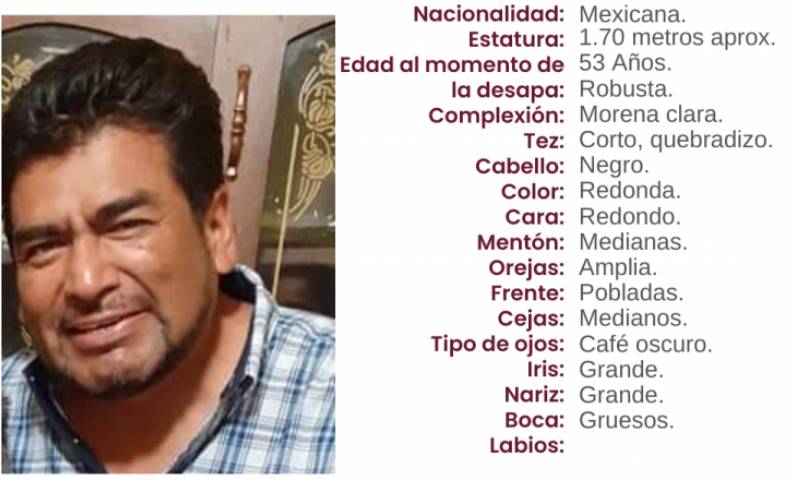 Puebla, Pue.- La Comisión de Búsqueda de personas dio a conocer la desaparición de José Enrique Morales González 53 años de edad.