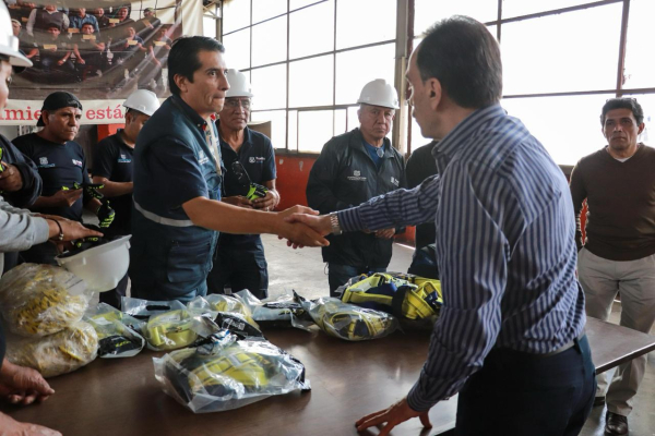 Entregan equipo de seguridad a la cuadrilla de mantenimiento de mercados en Puebla