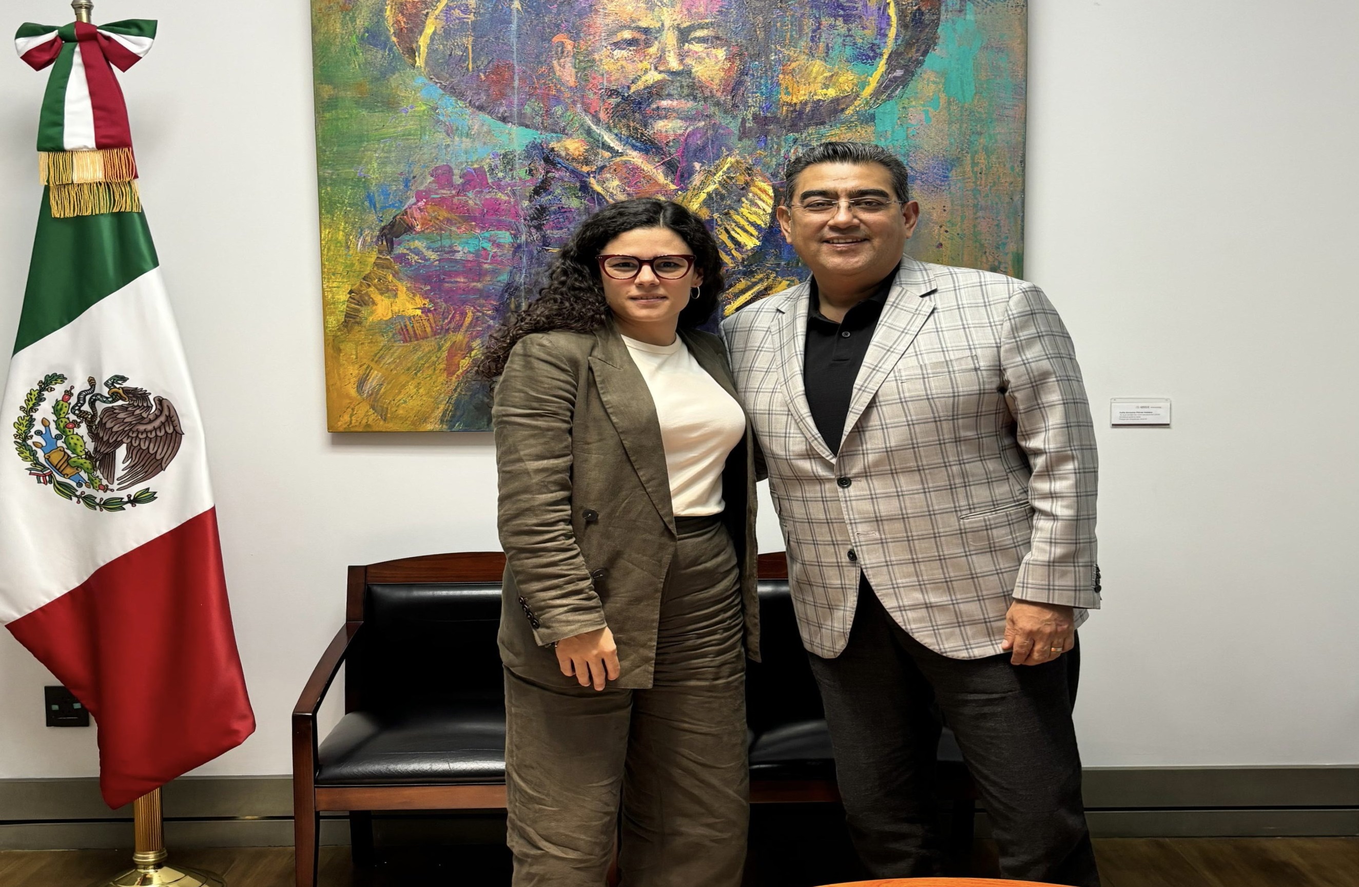 Puebla, Pue.- La tarde del jueves, la secretaria de Gobernación, María Luisa Alcalde recibió al gobernador de Puebla, Sergio Salomón Céspedes Peregrina.