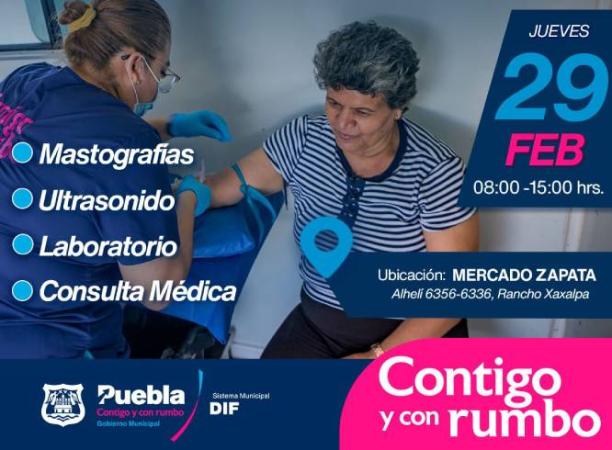 Asimismo, en el Mercado Zapata se contará con servicio de mastografías, ultrasonido, laboratorio y consulta médica en Alheli 6356-6336, Rancho Xalalpa, también de 8:00 a 15:00 horas.