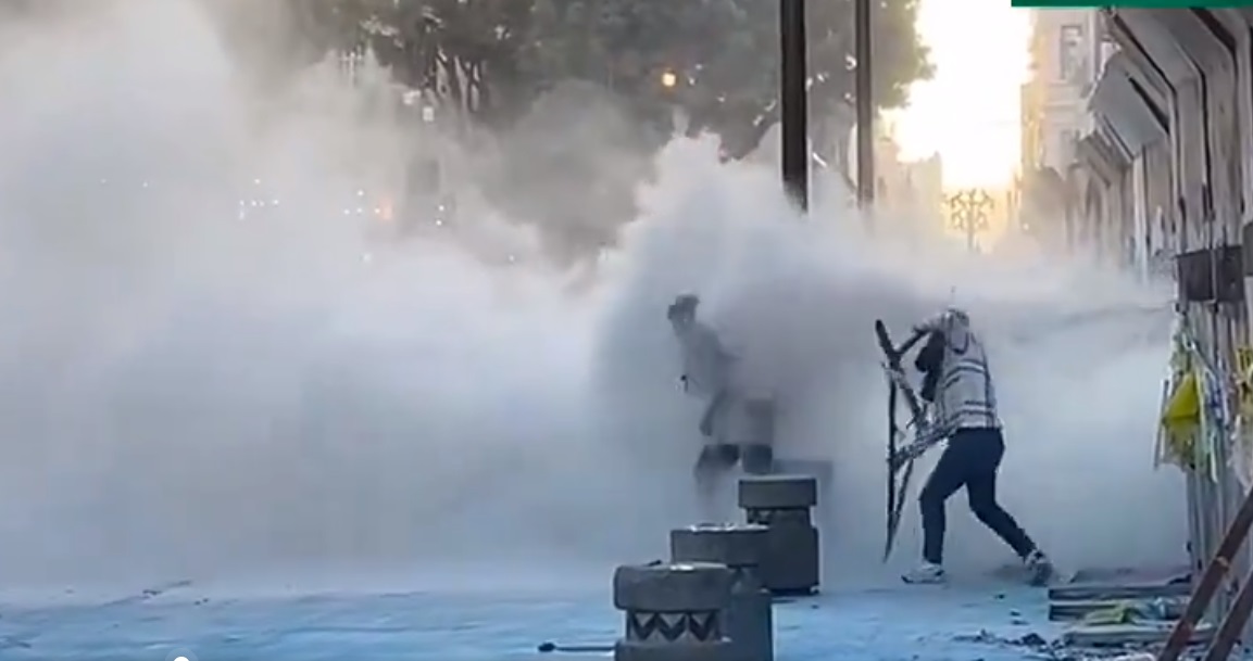 El gas lacrimógeno y agua que generó los disturbios se dio después de la participación de las feministas adheridas al Bloque Negro, quienes intentaron prender y derribar el muro metálico de Palacio.