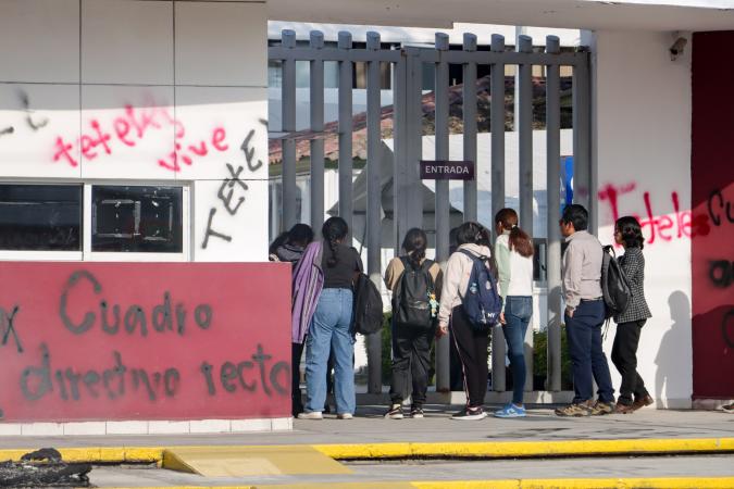 Aunque las instalaciones de la SEP ya se encontraban cerradas, eso no fue impedimento para que los quejosos intentaran ingresar y realizaran varias pintas en la fachada principal que decía “Teteles Vive”, “Auditoría cuadro directivo”.