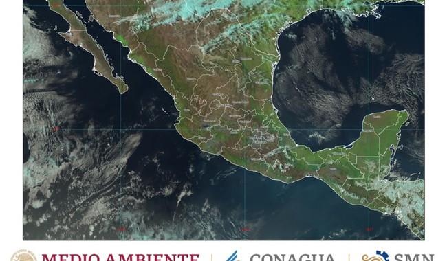 En contraste, dominará el cielo medio nublado con baja probabilidad de lluvias y ambiente de caluroso a muy caluroso sobre el resto del país, pronosticándose durante la tarde de mañana temperaturas máximas de 40 a 45 grados Celsius en Campeche, Chiapas, Colima, Guerrero, Jalisco, Michoacán, el sur de Morelos, Nayarit, la costa de Oaxaca y Tabasco.