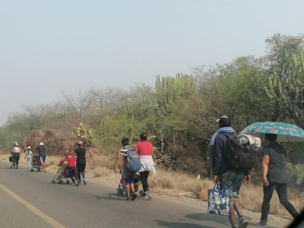 El domingo pernoctaron en la junta auxiliar de San José Tilapa, donde habitantes les ofrecieron alimentos, agua, además de atención prehospitalaria