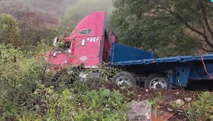 De acuerdo a las autoridades, debido al piso mojado por lluvia y a la densa neblina el tráiler patinó y cayó a un pequeño barranco a la altura del kilómetro 15+480 sentido de Cuernavaca.