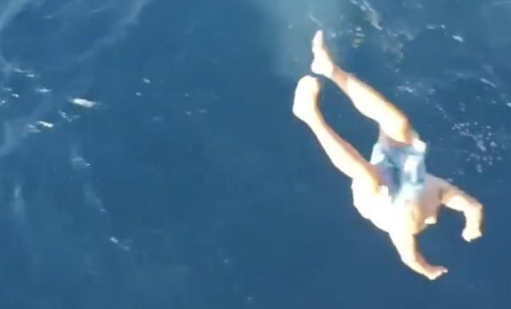 En el video, filmado este domingo por su hija, se puede ver al veterano actor lanzándose de cabeza al mar desde una altura aproximada de 9 metros.