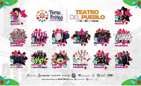 Mientras que el cartel de conciertos para el Teatro del Pueblo en Feria de las Fresas 2025 es el siguiente: