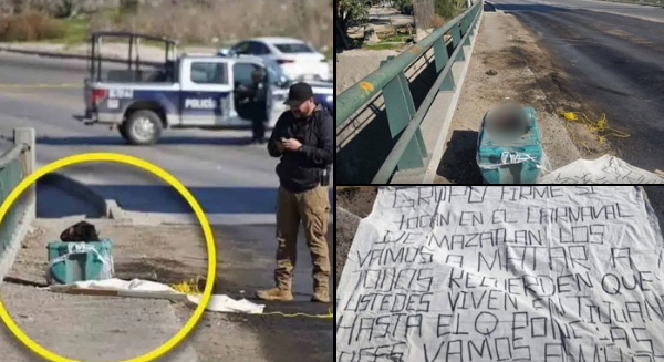 Ayer las autoridades de Tijuana, Baja California, encontraron una narcomanta dirigida a Eduin Caz y Grupo Firme sobre un puente que conecta las colonias Santa Fe y La Gloria. Junto a la manta, se hallaron restos humanos, incluyendo una cabeza dentro de una hielera.