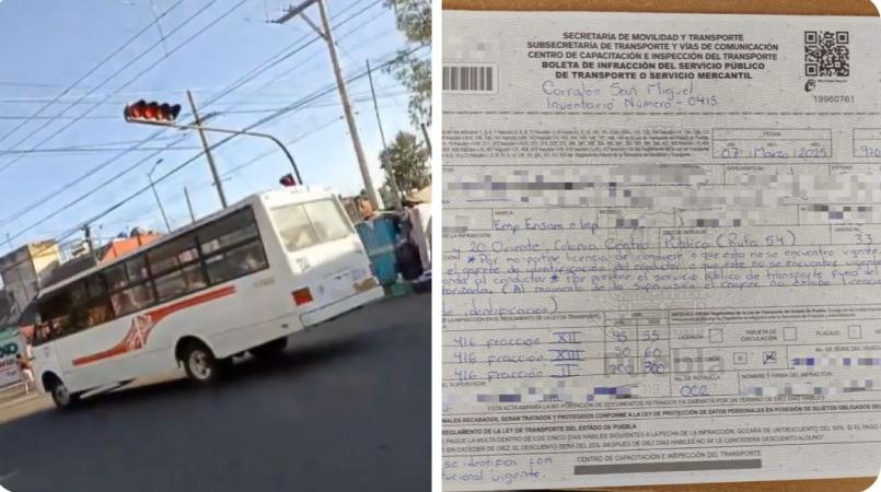 Sin embargo, la persona operadora no presentó ninguna licencia para conducir ni gafete de identificación, motivo por el cual la unidad fue infraccionada.