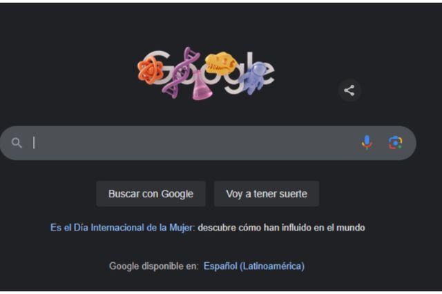 Este 8 de marzo, en el marco del Día Internacional de la Mujer, Google ha lanzado un doodle que rinde homenaje al rol crucial de las mujeres en los campos de Ciencia, Tecnología, Ingeniería y Matemáticas (CTIM). El doodle muestra las letras del logo de Google en tonos grises, pero adornadas con diversos símbolos representativos de estas disciplinas: un átomo rojo, una cadena de ADN morada, un matraz rosado, un fósil de dinosaurio amarillo y una figura de un astronauta azul.