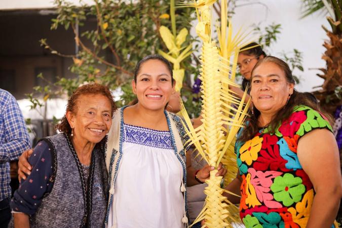 Este año, la presidenta municipal fue invitada a sumarse a esta tradición ancestral. Como mujer sanandreseña comprometida con su comunidad, participó activamente en el tejido de palma en los barrios de San Miguel, San Diego y San Pedro, viviendo de cerca el sentir del pueblo y la riqueza de una costumbre que da identidad al municipio.