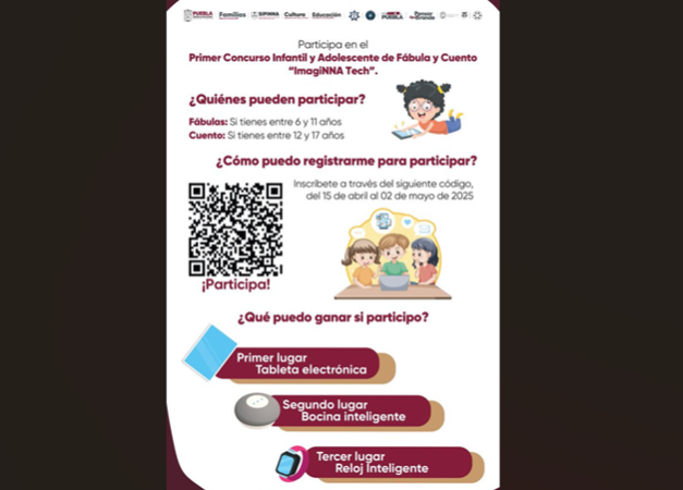 Con la finalidad de dar a conocer el talento de niñas, niños y adolescentes, el Gobierno del Estado, lanzó la convocatoria para el Primer Concurso de Fábula y Cuento “ImagiNNA Tech”, en donde los participantes podrán mostrar sus habilidades en la escritura y podrán ganar grandes premios como una tableta electrónica o un reloj inteligente.