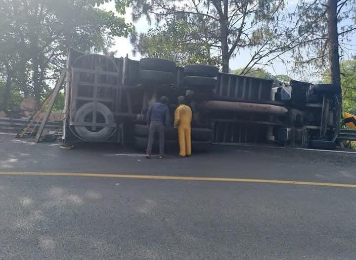 Hueytamalco , Pue.- Un camión volcó la mañana de este viernes sobre la carretera federal Amozoc-Nautla, a la altura del municipio de Hueytamalco, dejando al menos 4 personas lesionadas, daños materiales y sobre la cinta asfáltica.
