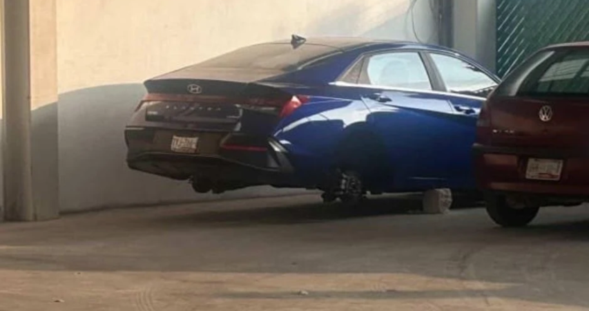 Le bajan las cuatro llantas en el estacionamiento de Acuática Deporte y Salud