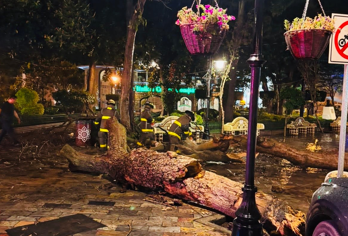 Atlixco, Pue.– La Secretaría local de Seguridad Ciudadana confirmó debido a los fuertes vientos y lluvias registradas la noche del sábado dos árboles colapsaron en el zócalo de la ciudad.