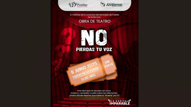 El 06 de junio en el Teatro de la Ciudad se presentará la Obra “No pierdas tu voz”, una puesta en escena que combina música y actos circenses con la finalidad de sensibilizar a los jóvenes sobre las consecuencias de las adicciones.