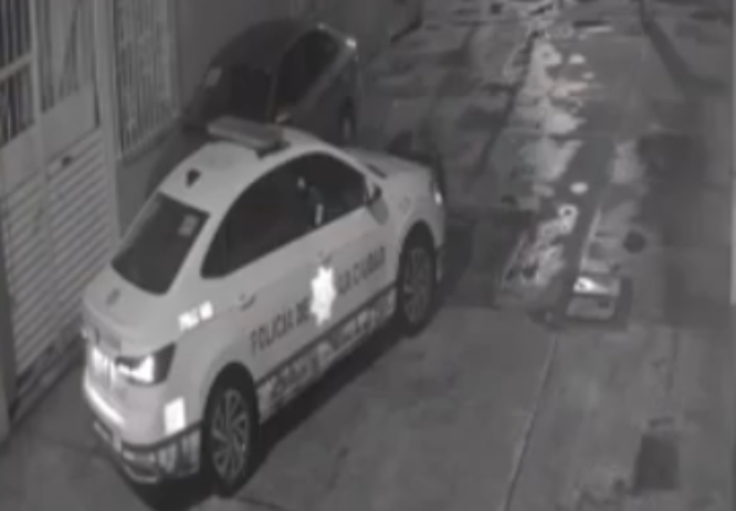 El propietario del vehículo afectado difundió un video en redes sociales como prueba del supuesto robo. En las imágenes captadas por cámaras de seguridad se observa cómo una patrulla llega al lugar, se estaciona en reversa junto al auto y uno de los uniformados —el conductor— desciende del vehículo oficial.