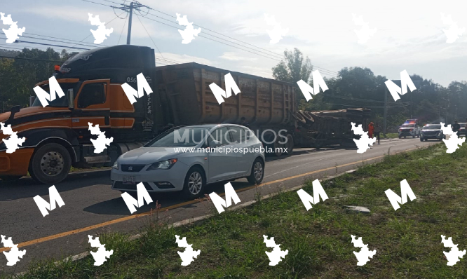Durante este mañana un tráiler volcó una de sus dos tolvas, cuando intentó retornar sobre la autopista Tlaxcala-Texmelucan, la altura de la zona militar de Panotla.