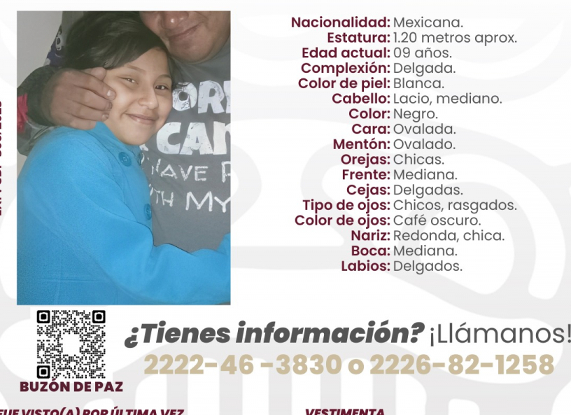 Las autoridades del estado de Puebla mantienen activa la búsqueda de Danna Velázquez Cancino, una niña de 9 años de edad, cuya desaparición fue reportada el pasado 9 de mayo de 2025. La menor fue vista por última vez en el municipio de Tehuacán, Puebla, en compañía de su madre, la señora Iris Jadhai Velázquez Cancino.
