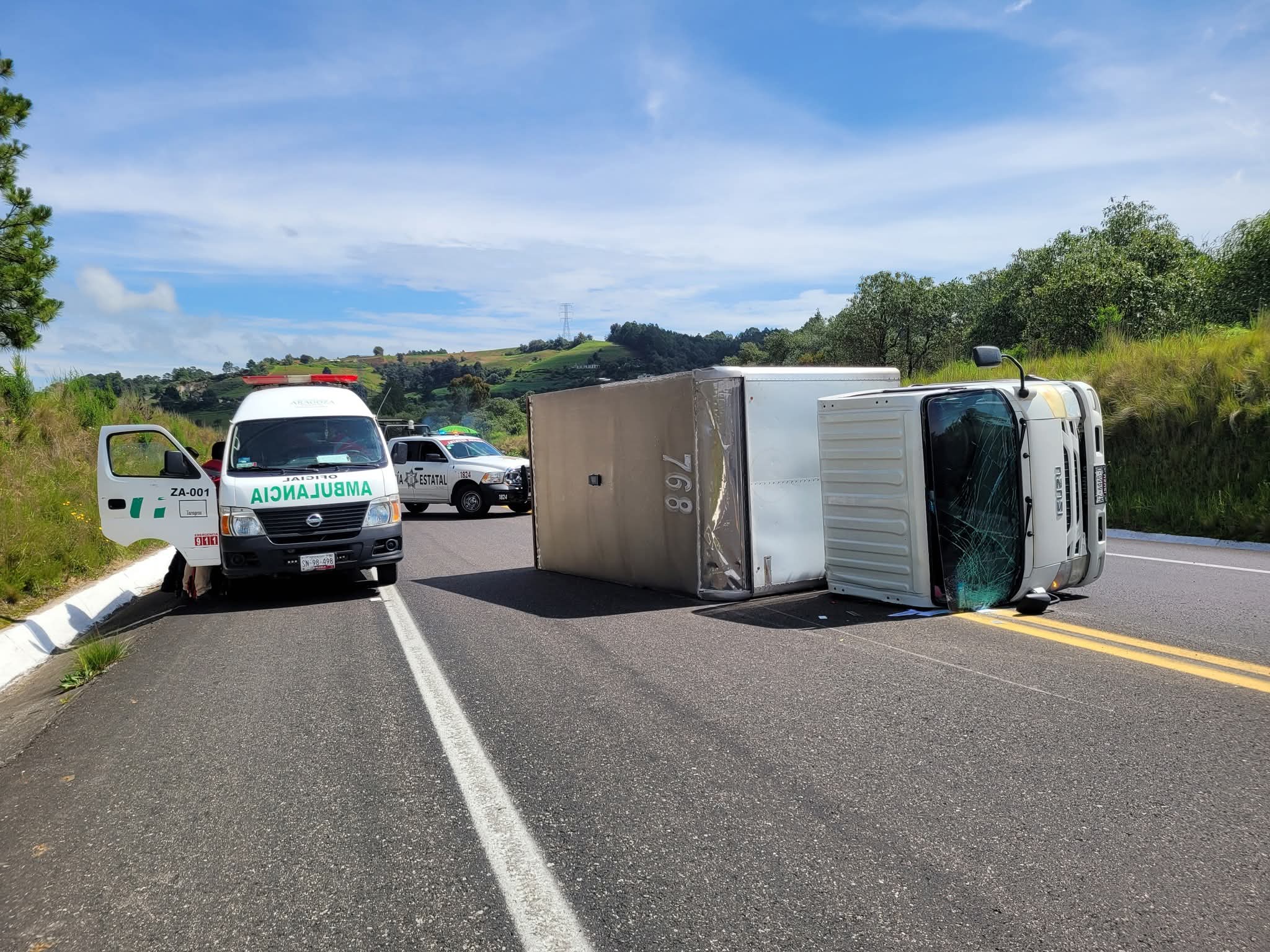 El percance ocurrió en el tramo carretero Oyameles-Teziutlán, a la altura del kilómetro 106 + 860 el cual se encuentra en las inmediaciones del municipio de Zaragoza, luego de que el conductor de un pequeño camión marca Isuzu volcara quedando tendido sobre la cinta asfáltica sin que pudieran circular unidades.