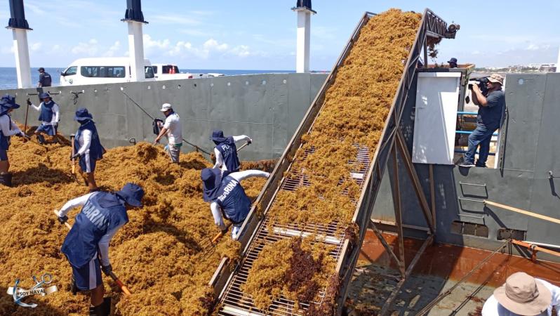 Bajo el esquema conjunto, ya suman más de 44 mil toneladas recolectadas durante el presente año, lo cual da muestra de la buena interacción entre todas las partes responsables en la remoción del alga.
