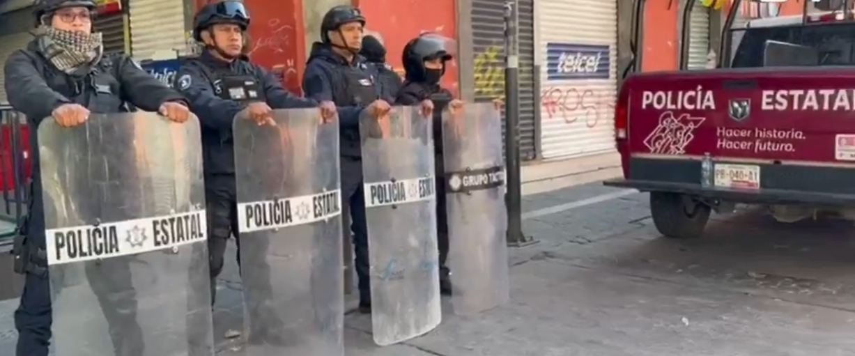 La presencia de elementos de la Secretaría de Seguridad Pública (SSP) del estado de Puebla persiste en la zona del Centro Histórico, en un operativo con los tres niveles de gobierno para evitar la instalación del comercio informal.