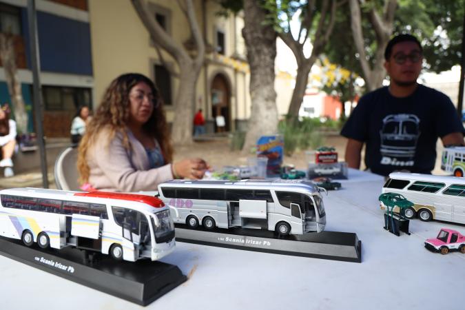 Puebla, Pue.- Cientos de seguidores de los camiones miniatura asisten a la Primera Reunión de Expo-Escalas Autobuses y Camiones en el Parque del Mariachi en la ciudad de Puebla.